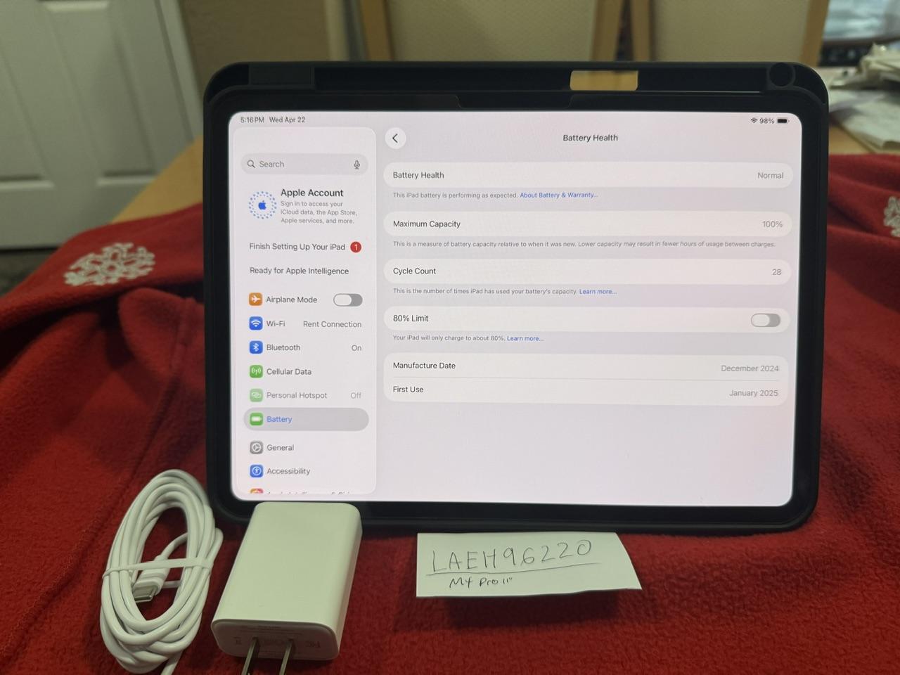 iPad Pro M4 LTE Unlocked Cellular and WiFi 100 % BH 28 cycles
