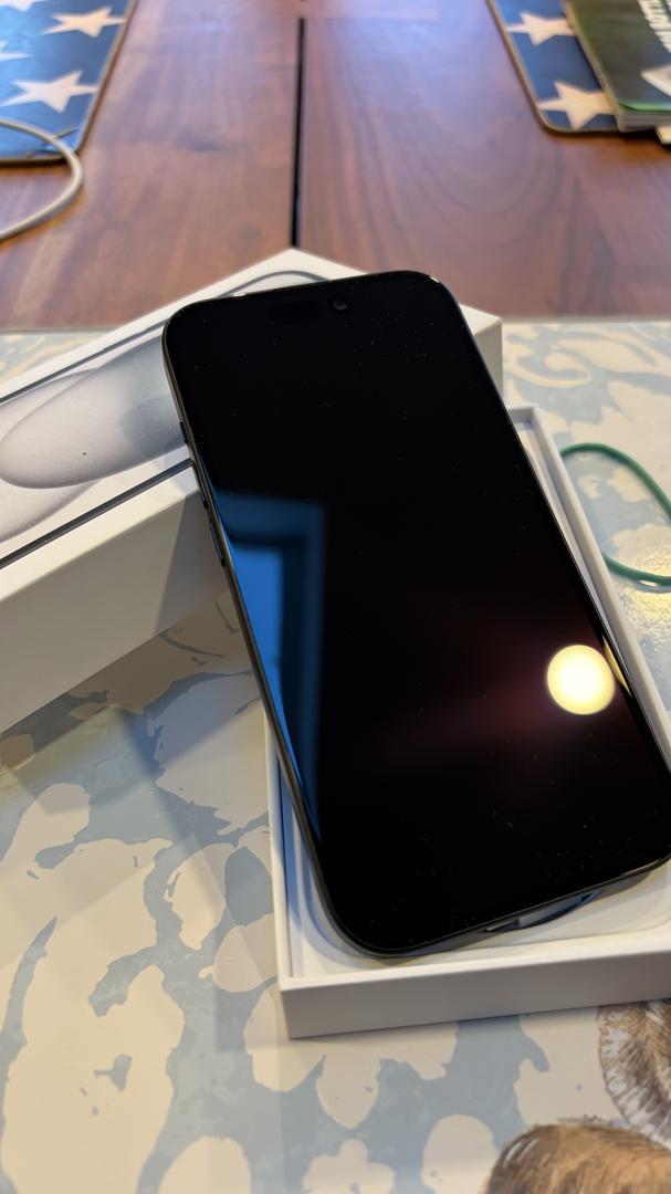 The iPhone 15 features a 6.1-inch Super Retina XDR display with a resolution of 2556 x 1179 at 460 pixels per inch, a contrast ratio of 2,000,000:1, a 1000 nits typical max brightness, a 1600 nits HDR max brightness, and a 2000 nits peak (outdoor) max brightness. Additional display features include the Dynamic Island, HDR, wide color (P3), Haptic Touch, True Tone, and a fingerprint-resistant oleophobic coating.