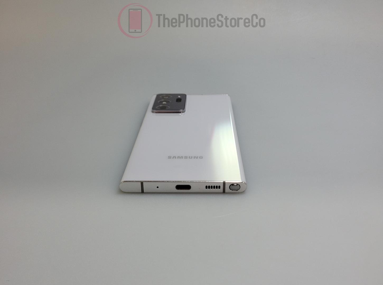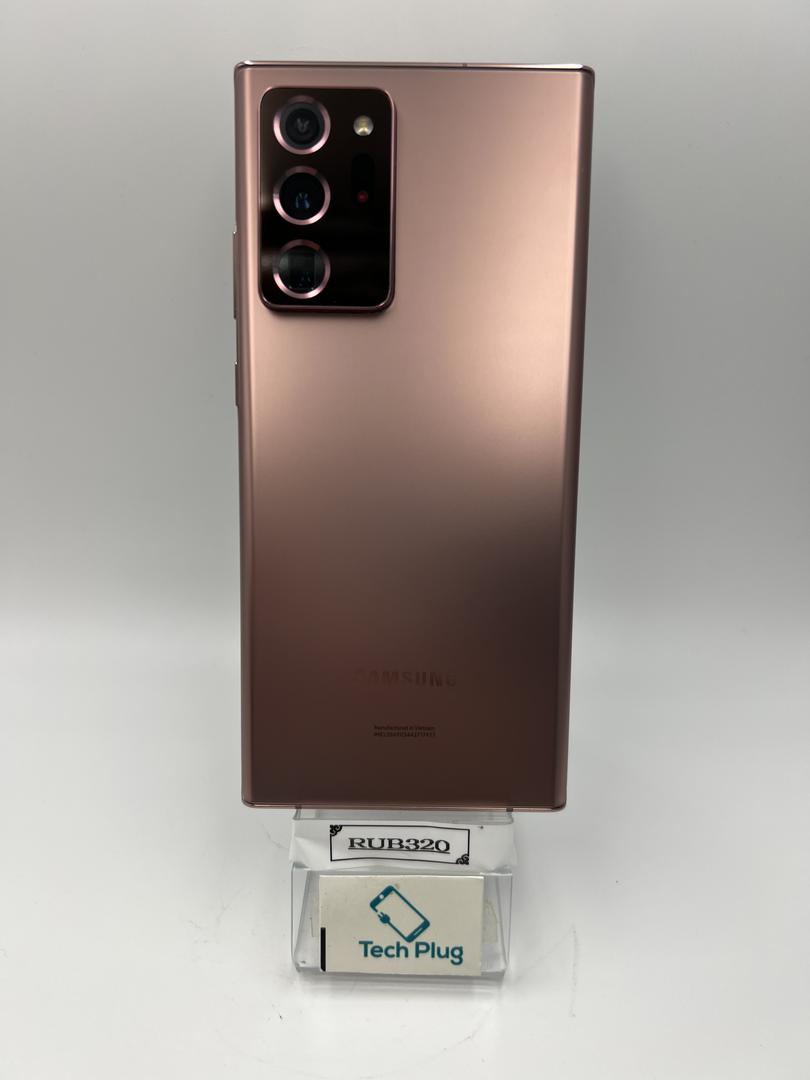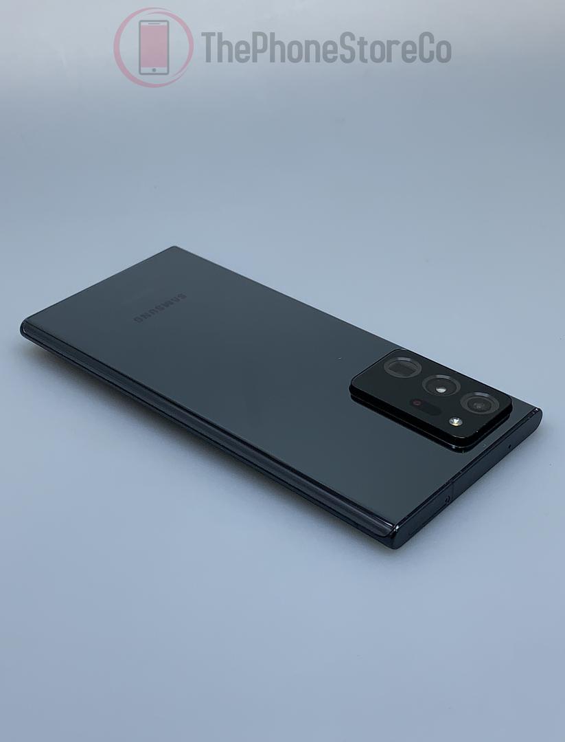 El Samsung Galaxy Note 20 Ultra 5G es la versión con capacidad 5G del Note 20 Ultra. Este modelo fue lanzado en agosto de 2020 con soporte 5G para redes sub6 y mmWave. La porción 'Ultra' del nombre se refiere al tamaño, que en este caso significa una pantalla de 6.9 pulgadas. La pantalla es una pantalla Infinity-O de borde a borde, y esto es evidente debido a los biseles delgados y el uso de la cámara frontal estilo 'hole-punch'. Samsung tiene una cámara de 10MP (f/2.2) en la parte frontal y un conjunto de triple cámara en la parte trasera con una gran angular de 108MP (f/1.8), una ultra gran angular de 12MP (f/2.2) y un teleobjetivo de 12MP (f/3.0). El Note 20 Ultra 5G también tiene un S Pen, que incluye soporte para gestos Air Gestures. Otras características destacadas incluyen un procesador Snapdragon 865+ con 12GB de RAM, una batería de 4,500 mAh con carga por cable de 25W y carga inalámbrica Qi, una ranura para tarjeta microSD y opciones de almacenamiento interno de 128GB, 256GB o 512GB.