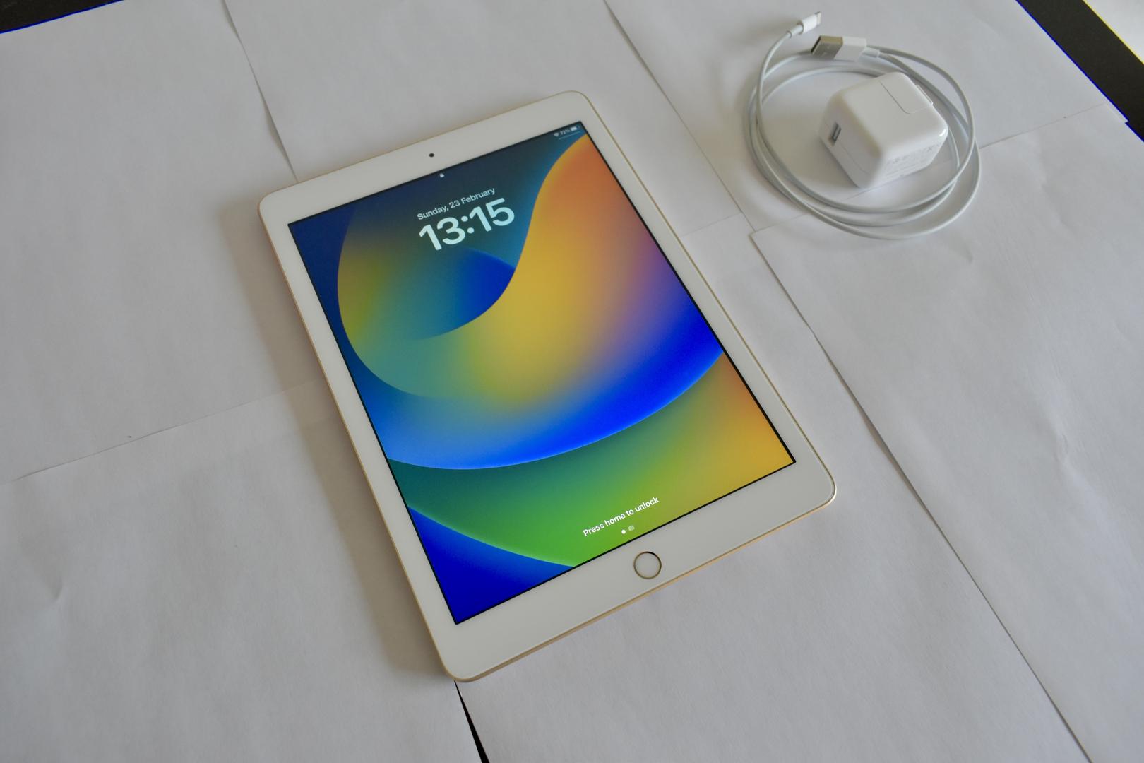 Apple released the fifth-generation iPad in March 2017. This iPad was running iOS 10.3 at launch, and similar to previous versions, the fifth-generation iPad was available in a WiFi-only and a WiFi + Cellular model. The iPad features a 9.7-inch display with a resolution of 2048 x 1536, and it was powered by the Apple A9 processor with the Apple M9 motion coprocessor, and options for 32GB or 128GB of storage space. The fifth-generation iPad also has a 1.2MP front-facing camera, 8MP rear-facing camera, WiFi 802.11 a/b/g/n/ac, Bluetooth 4.2, and a Lightning connector for charging. New features that arrived with this model iPad included iBeacon, a barometer, and Touch ID for device security.