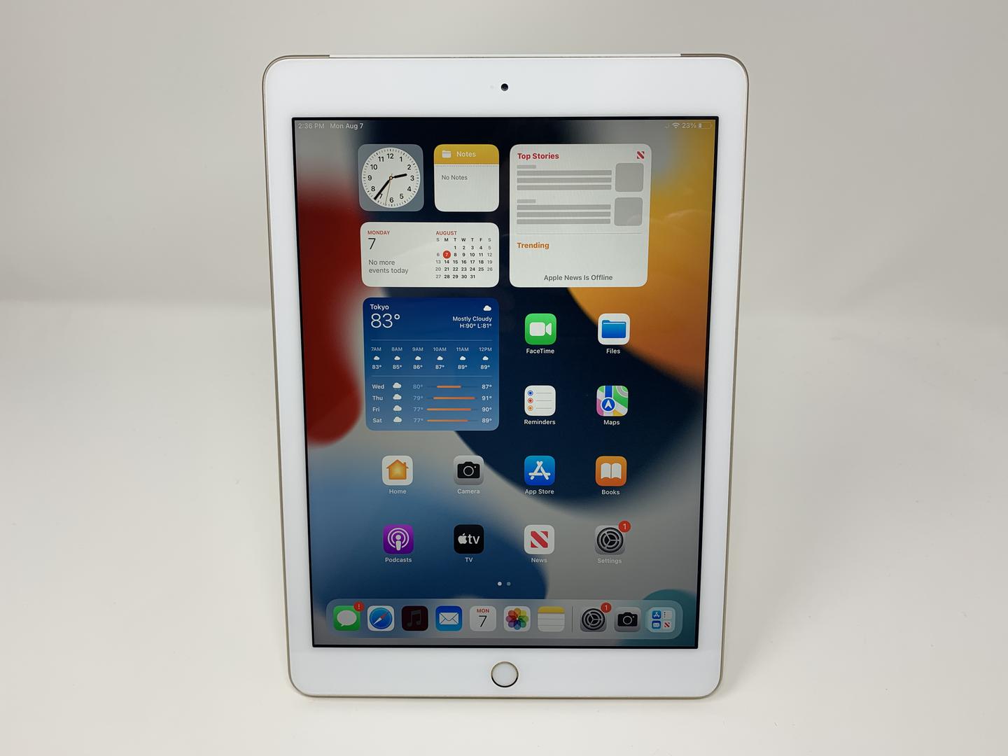 The iPad (5th generation) is available in Space Gray, Silver, and Gold. The color is on the back and sides of the iPad, and the color around the display on the front varies based on the iPad color. The Space Gray model has a black bezel, and the Silver and Gold models have a white bezel.