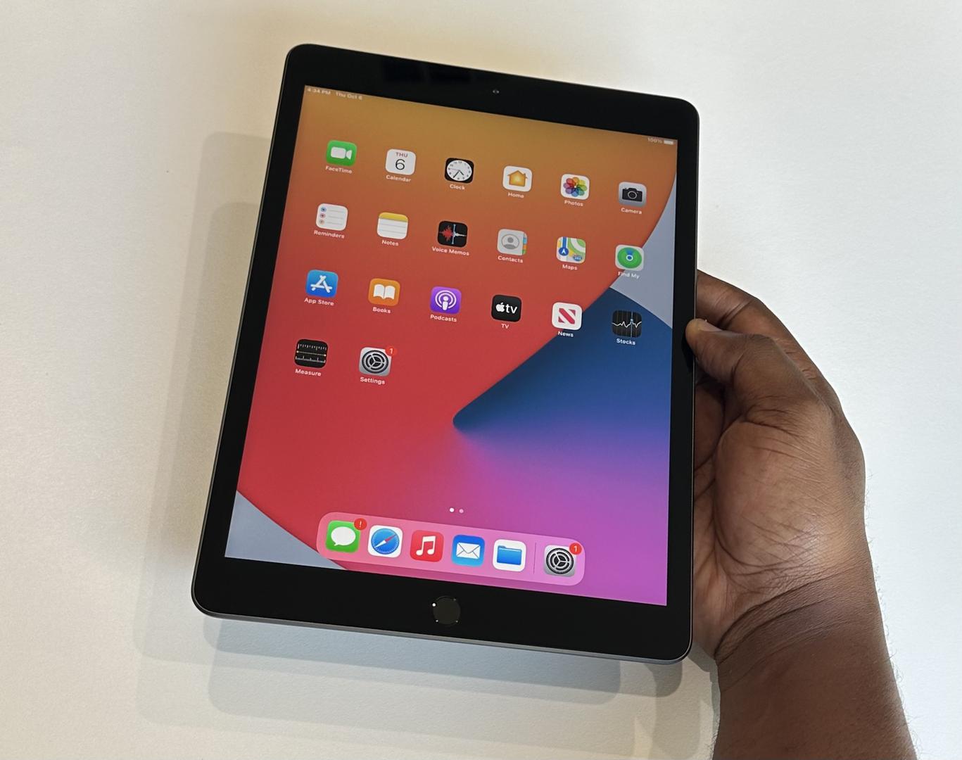 Apple introduced the 8th generation iPad in September 2020. The 8th generation iPad is powered by the Apple A12 Bionic chip with Neural Engine. This upgraded chip provided a notable performance boost coming from the Apple A10 Fusion chip that powered the previous-generation iPad. Other key features of the 8th generation iPad include a 10.2” Retina display with a fingerprint-resistant oleophobic coating and resolution of 2160 x 1620, options for 32GB or 128GB of internal storage space, a 1.2MP FaceTime HD camera on the front, and an 8MP wide camera with an f/2.4 aperture and HDR for photos on the back. This model arrived with iOS 14 and support for the 1st generation Apple Pencil and Apple Smart Keyboard.