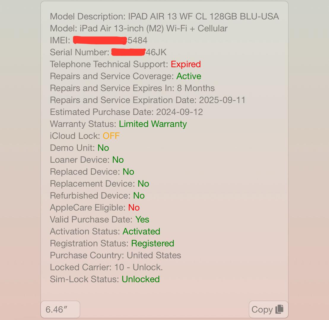 iPad Air 13" (M2) 2024 Storage
