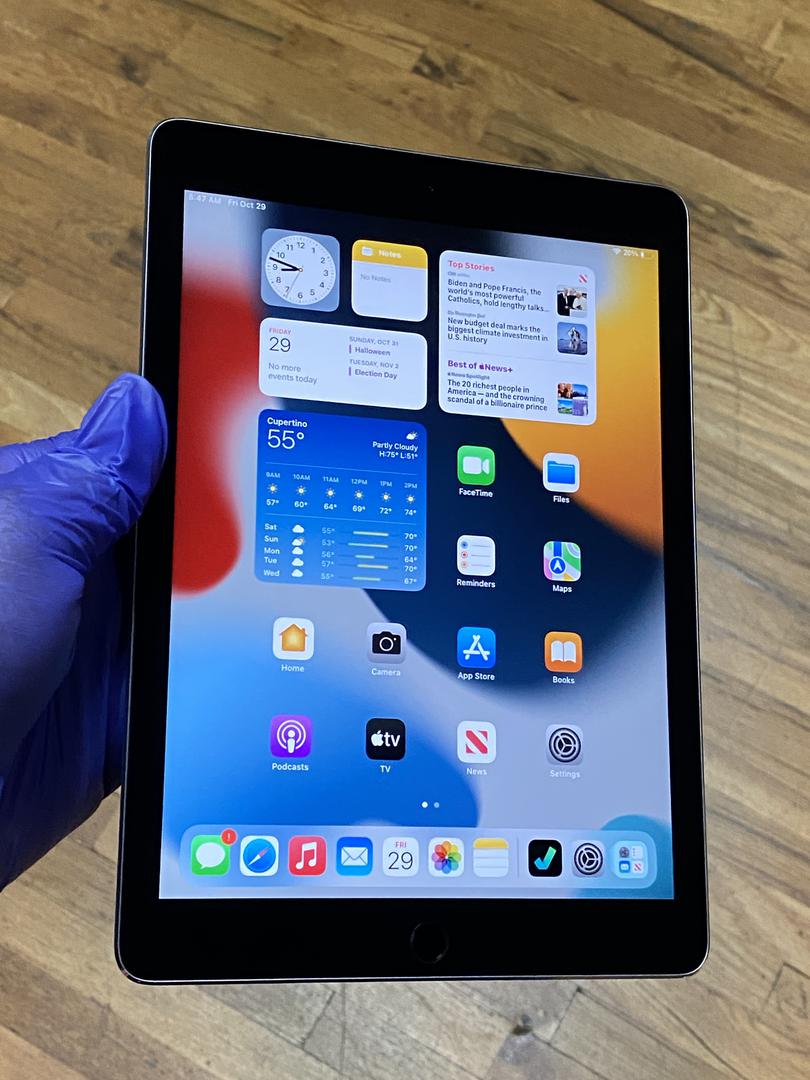 Apple released the 2nd generation iPad Air in October 2014. This model arrived with iOS 8, as well as improvements in several key areas. When compared to the 1st generation iPad Air, the iPad Air 2 was thinner and lighter and offered better CPU and graphics performance. The iPad Air 2 is powered by the Apple A8X chip, and it weighs 0.96-pounds and is 6.1mm thick. The iPad Air 2 display is 9.7” and it has a resolution of 2048 x 1536. This display was also fully laminated and featured an anti-reflective coating, which are two features that weren’t available on the previous-generation iPad Air. Other highlights include up to 128GB of storage space, an 8MP wide camera with Auto HDR for photos on the back, a Lightning connector for charging, and Touch ID for device security.