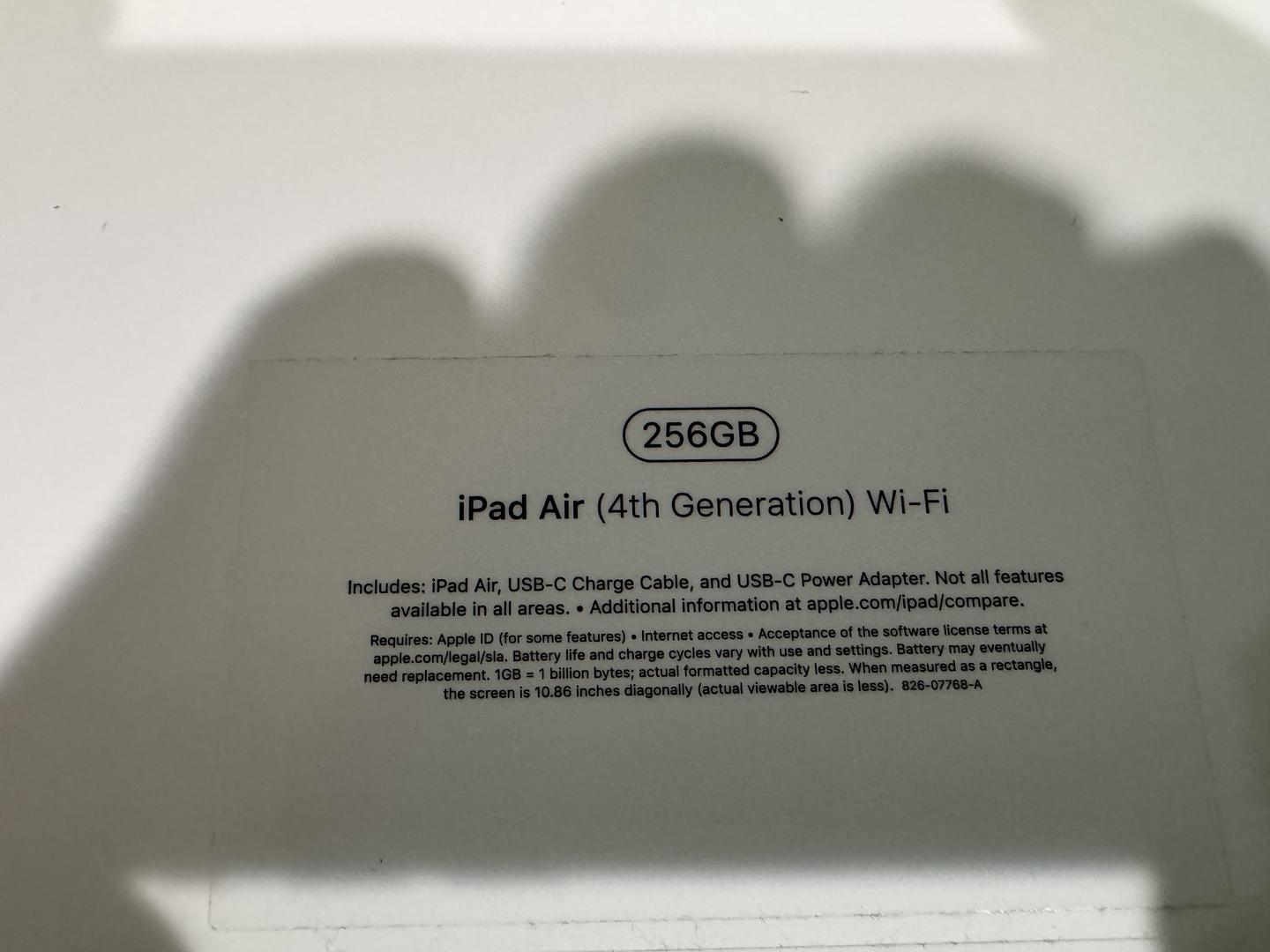 The storage options for the iPad Air (4th generation) include 64GB and 256GB.