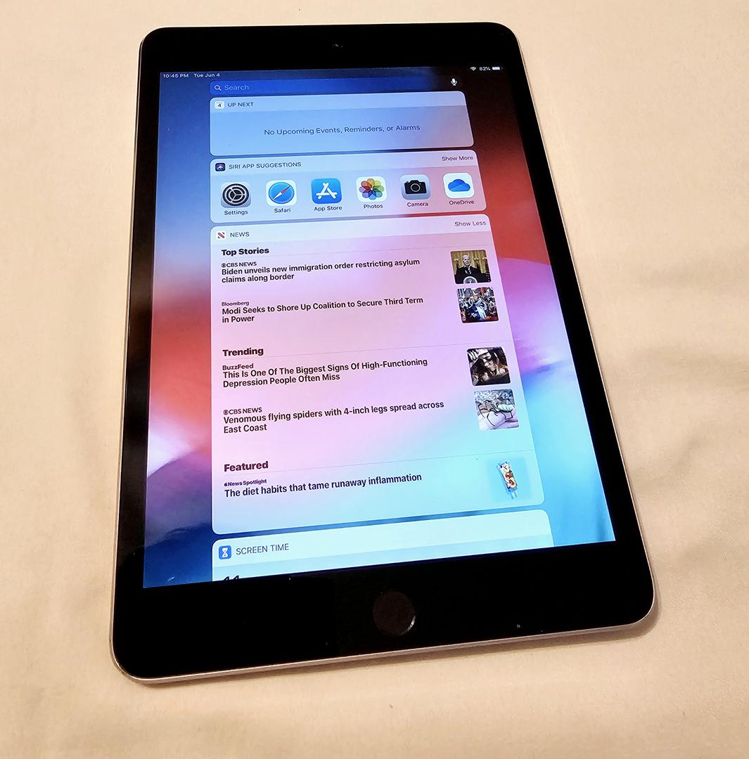 Apple released the iPad Mini 3 in October 2014, and this release kept many of the same features as the previous-generation iPad Mini 2. The display remained the same at 7.9-inches with a resolution of 2048 x 1536, and the Mini 3 was powered by the Apple A7 chip and Apple M7 motion coprocessor. The camera setup was also the same with a 1.2MP on the front and a 5MP on the back. The iPad Mini 3 launched with iOS 8.1 and was available with options for 16GB, 64GB, or 128GB of storage. Other features of the iPad Mini 3 include WiFi 802.11 a/b/g/n, Bluetooth 4.0, and a 6471 mAh battery. The overall feature set remained the same, however, Apple did add a fingerprint sensor for Touch ID. You can also find the iPad Mini 3 in WiFi-only and WiFi + Cellular variants, with the cellular model also having assisted GPS.