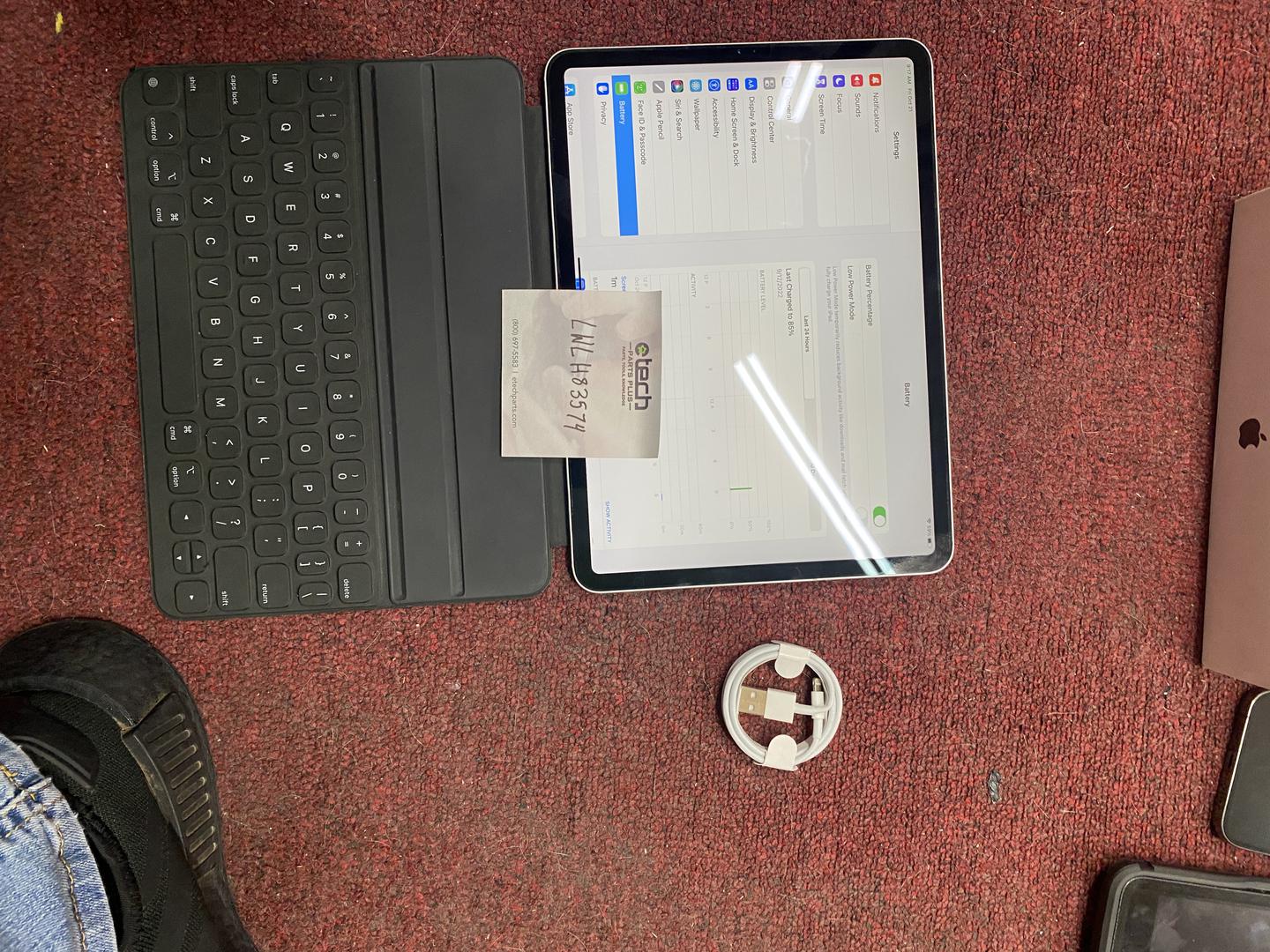 The iPad Pro 11” (2nd generation) has a 28.65Wh lithium-polymer battery. This watt-hour battery capacity can provide up to 10 hours of web surfing time when on WiFi, or up to 9 hours of web surfing time when using cellular. The iPad Pro 11” (2nd generation) charges using an 18W USB-C wall power adapter and USB-C charging cable.