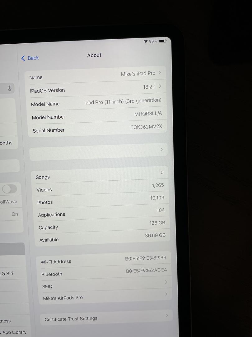 iPad Pro 11" 3rd Gen 2021 Storage
