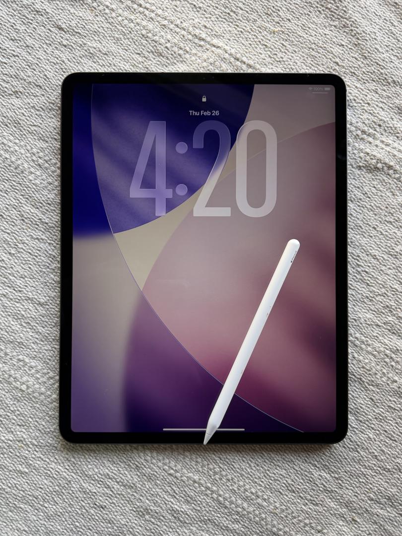 The iPad Pro 12.9” (4th generation) features a 12.9-inch Liquid Retina display with a resolution of 2732 x 2048, a PPI of 264, and a 600 nits max brightness. Other key display features include ProMotion technology, True Tone, wide color (P3), an anti-reflective coating, and a fingerprint-resistant oleophobic coating.