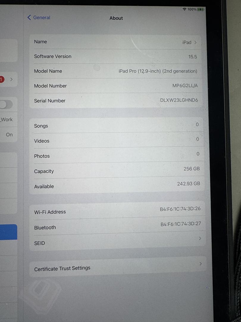 iPad Pro 12.9" 2nd Gen 2017 Storage