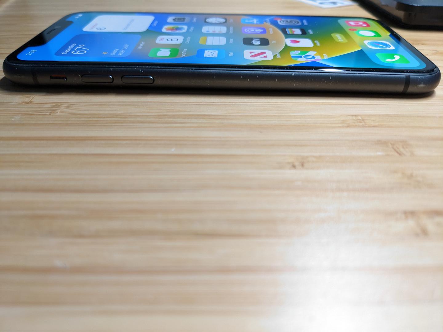 The iPhone 11 is slightly thicker than newer generations of iPhones but is otherwise comparable to the rest of Apple’s flagship models. It measures 5.94 inches tall, 2.98 inches wide, and 0.33 inches thick. This device weighs 6.84 ounces.