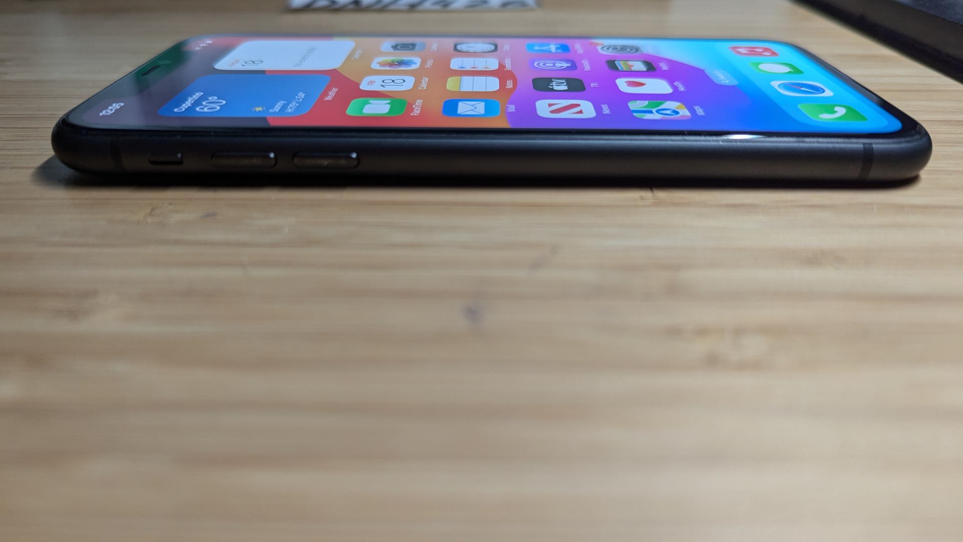 The iPhone 11 is slightly thicker than newer generations of iPhones but is otherwise comparable to the rest of Apple’s flagship models. It measures 5.94 inches tall, 2.98 inches wide, and 0.33 inches thick. This device weighs 6.84 ounces.