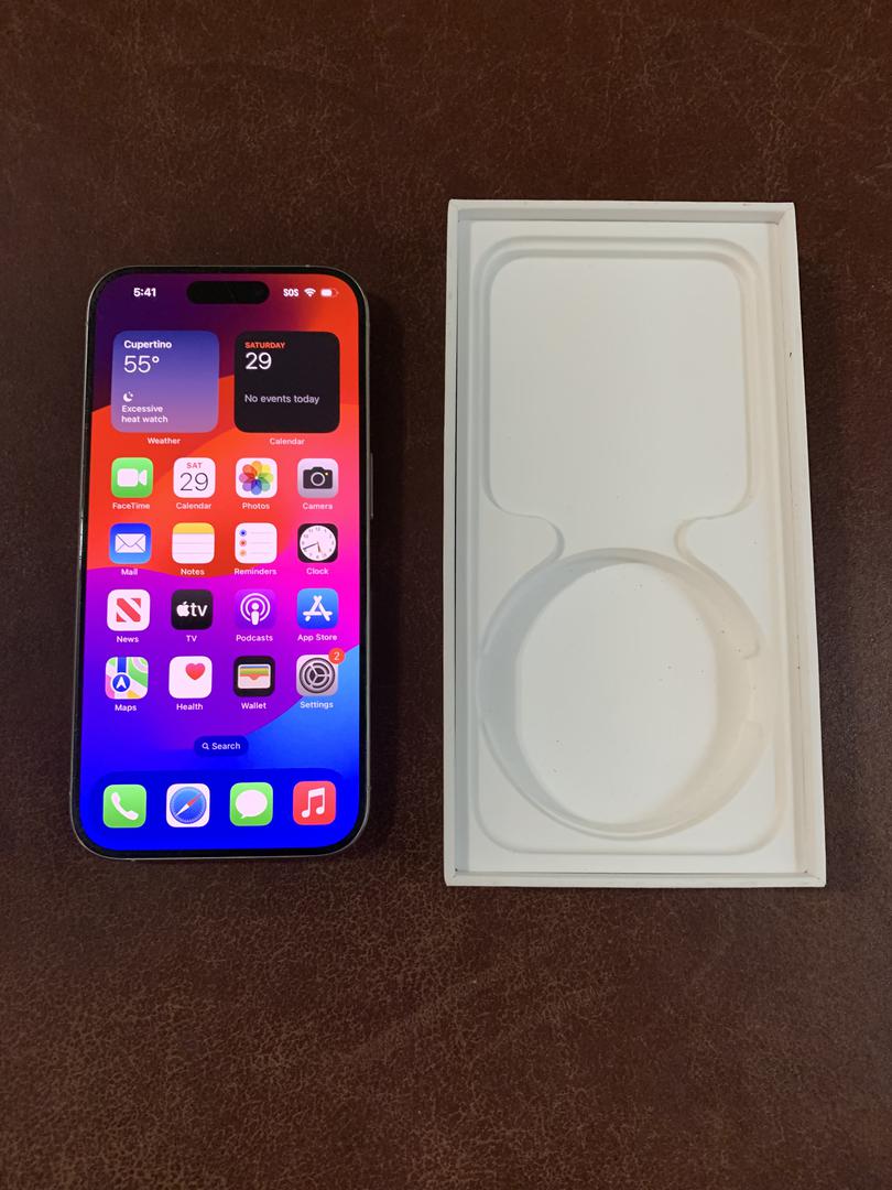The iPhone 15 Pro features an always-on 6.1-inch Super Retina XDR display with a Dynamic Island, HDR, True Tone, and ProMotion technology for adaptive refresh rates up to 120Hz.