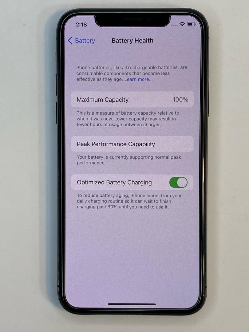 The iPhone X features a 2,716 mAh rechargeable lithium-ion battery. Battery life estimates for the iPhone X include up to 13 hours of video playback time and up to 60 hours of audio playback time. The smartphone is fast-charge capable and can reach a 50% charge in 30 minutes using an Apple 20W power adapter. Charging options include a Lightning cable or wirelessly using a Qi wireless charging pad.