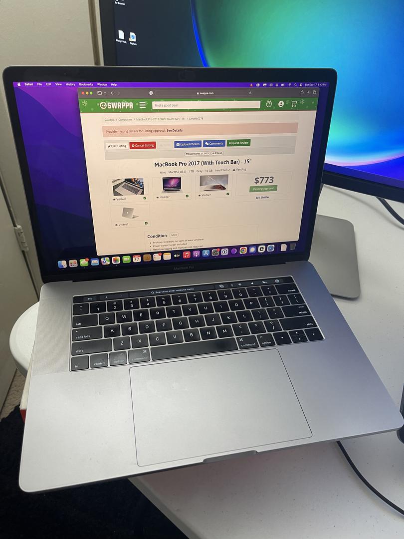 In general, MacBook Pro 2017 (With Touch Bar) - 15" color doesn't affect price, resale value, or depreciation much on Swappa; so go with the color you like best. Other factors, such as condition, and storage size have a larger influence on MacBook Pro 2017 (With Touch Bar) - 15" prices.