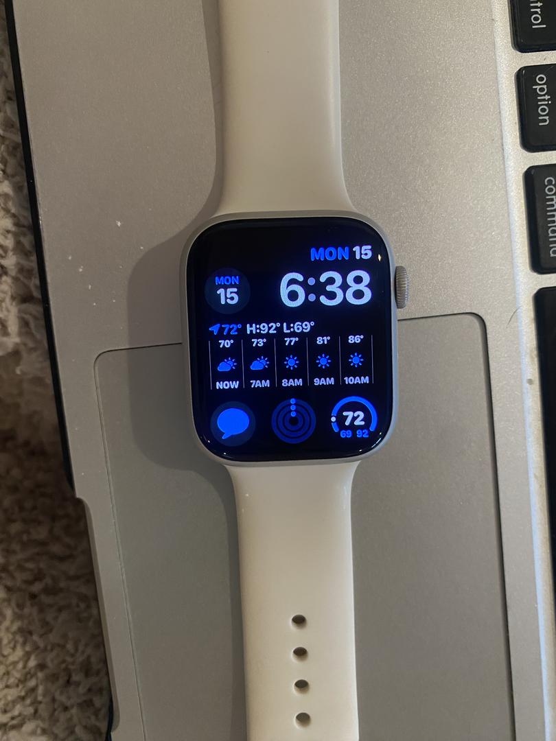 Starlight is a popular Watch Series 7 45mm color preference, new to this generation of Apple Watch devices, and not found on the previous Watch Series 6 44mm.