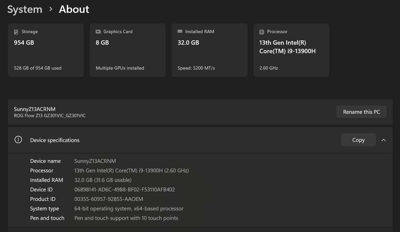 ROG Flow Z13-ACRNM Storage