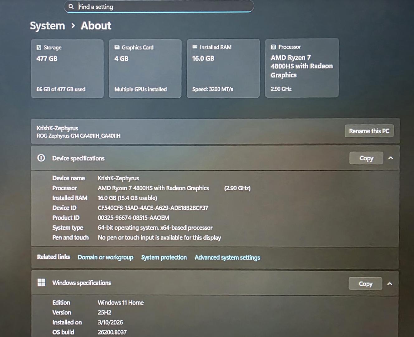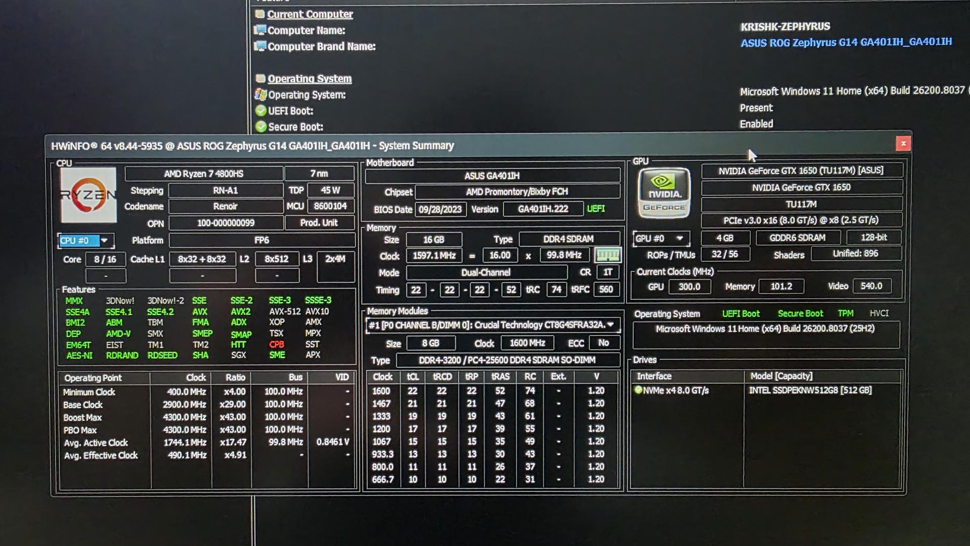 ROG Zephyrus G14 (2020) GA401 Storage