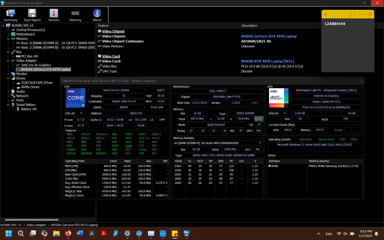 XPS 15 9530 (2023) Storage
