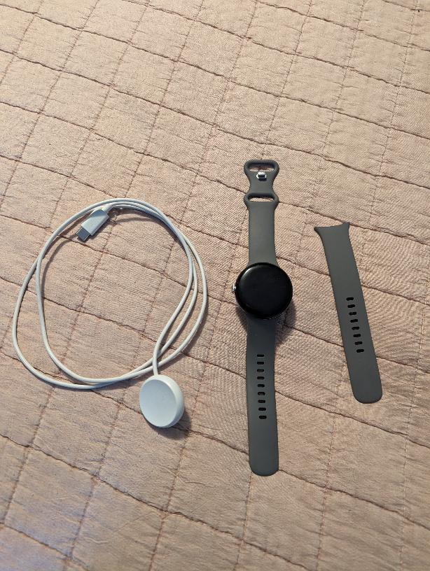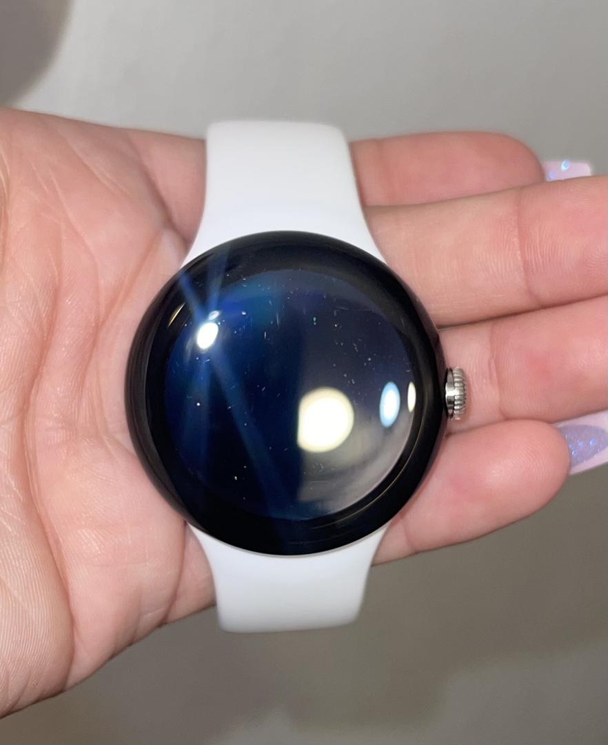 The Pixel Watch is available in a 41mm case size, made of stainless steel, and features include a 320PPI AMOLED always-on display that is protected by custom 3D Corning Gorilla Glass 5, an Exynos 9110 SoC / Cortex M33 coprocessor, 32GB of storage, a 294 mAh battery, and launched with Wear OS 3.5.