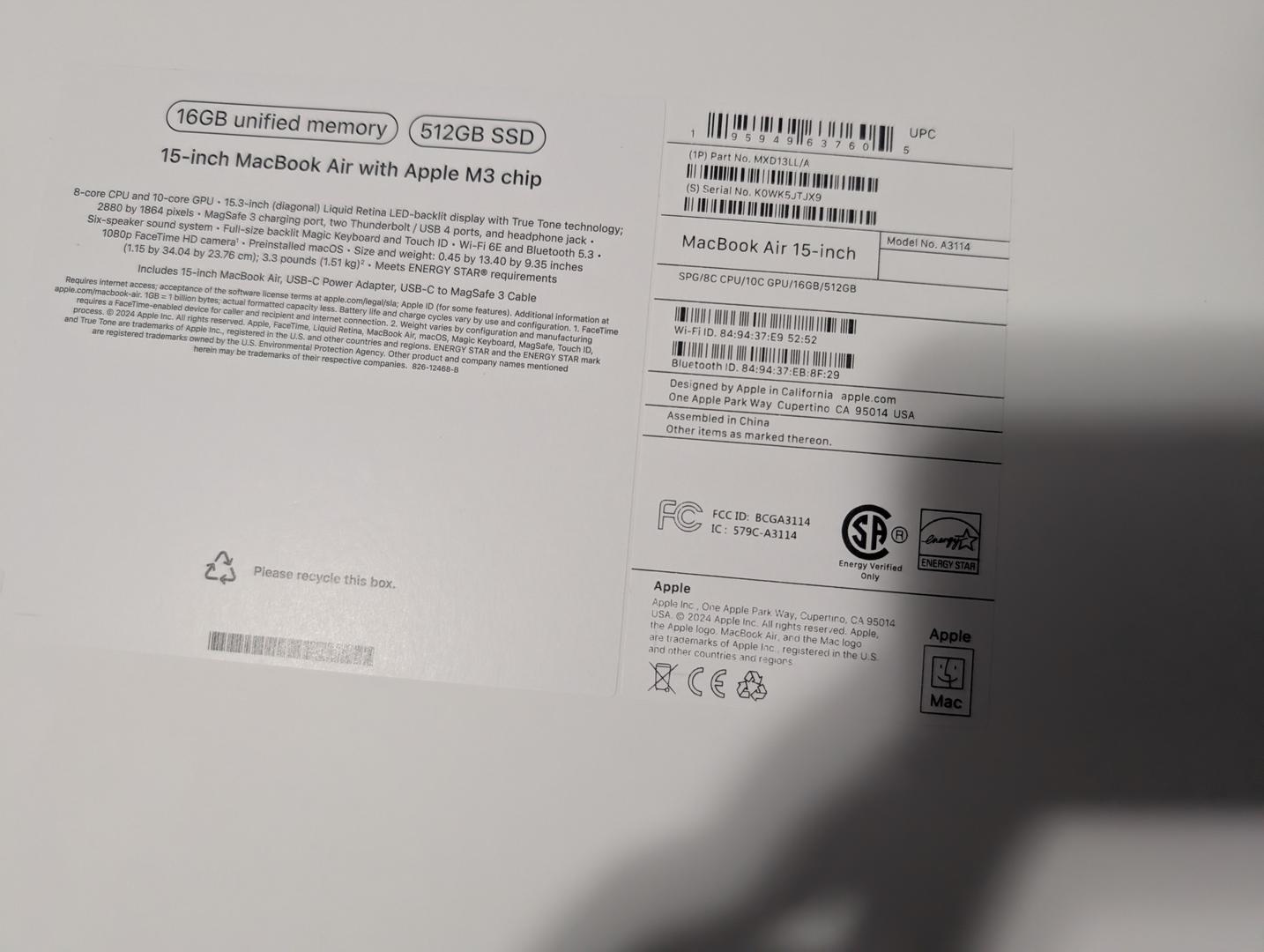 MacBook Air 2024 (M3) - 15" Storage
