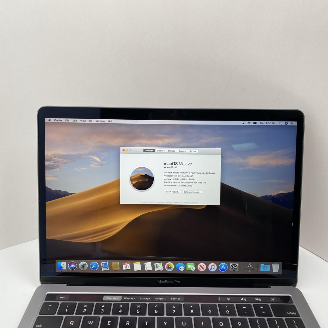 In general, MacBook Pro 2018 (With Touch Bar) - 13" color doesn't affect price, resale value, or depreciation much on Swappa; so go with the color you like best. Other factors, such as condition, and storage size have a larger influence on MacBook Pro 2018 (With Touch Bar) - 13" prices.
