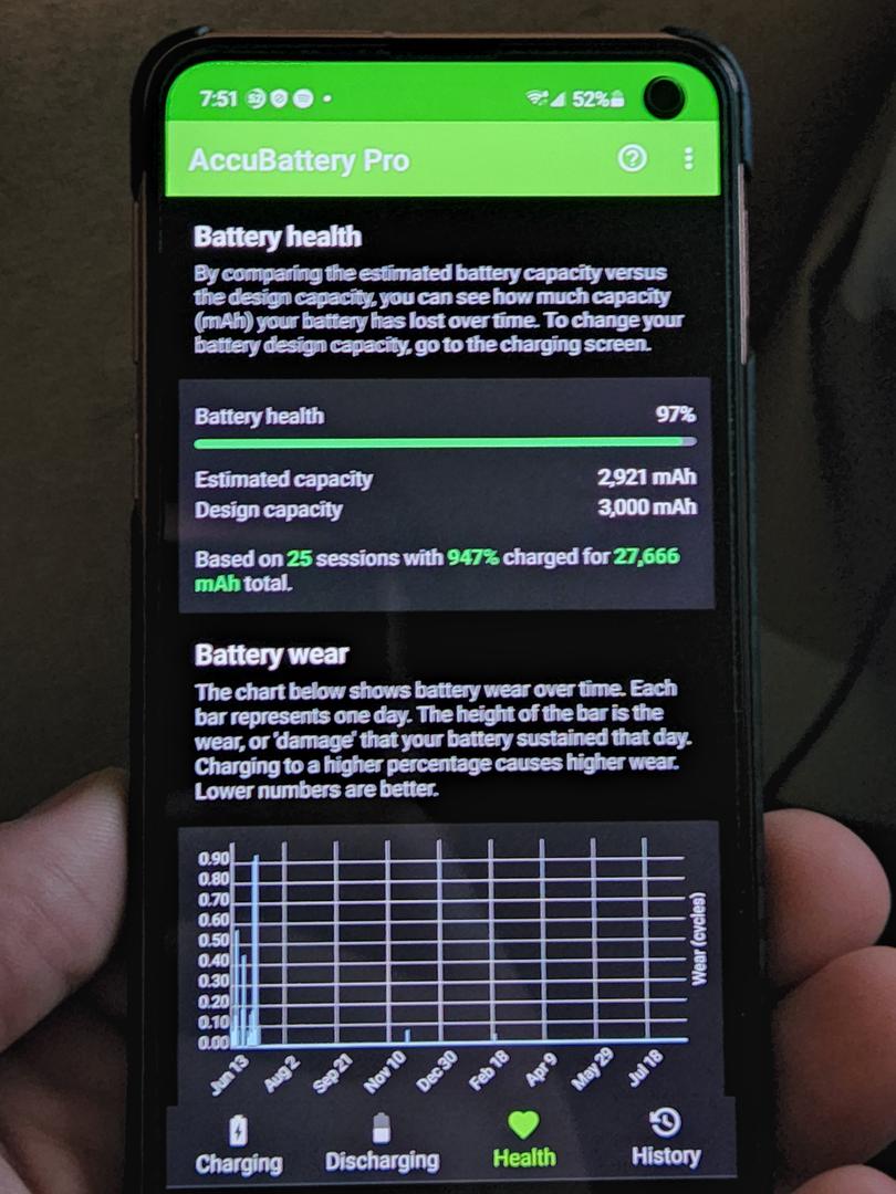 The Galaxy S10e sports a 3,100 mAh lithium-ion battery. Battery expectations for this device are under 10 hours in most categories, including video playback and web browsing. However, this low battery performance is partially offset by the S10e's 15W Fast Charging and 15W Qi wireless charging.