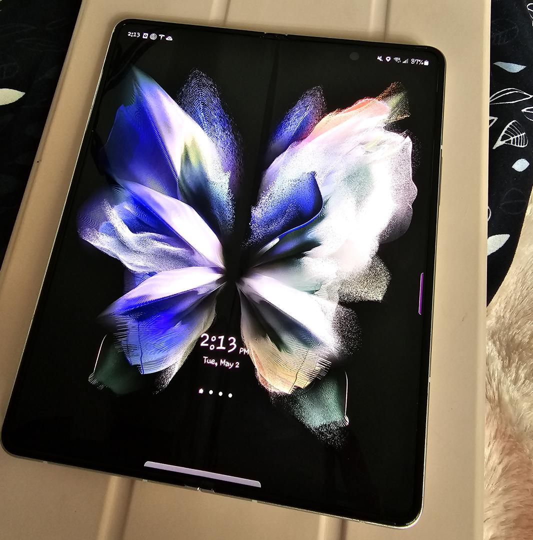 Samsung announced the Galaxy Z Fold3 in August 2021. The Z Fold3 is part of the Galaxy Z line of foldable smartphones and serves as the follow-up to the Galaxy Z Fold2. The Galaxy Z Fold3 launched with Android 10 and key features include 5G cellular connectivity, a 6.2” cover screen on the outside, and a 7.6” main screen on the inside. The Galaxy Z Fold3 supports the S Pen, and hardware features include a Qualcomm Snapdragon 888 processor, 12GB of RAM, up to 512GB of storage space, a 10MP selfie camera on the cover (exterior) display, a 4MP under-display front camera on the main (interior) display, and a triple rear-camera array with a 12MP ultra-wide, 12MP wide-angle, and 12MP telephoto lens.
