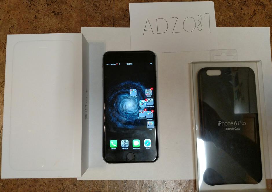 Up for sale is a Mint Condition Space Gray Iphone 6 Plus. The device is barely used and I am only getting rid of it because I decided I don't like the size of the phone or iOS. Along with the phone I am also including the original box and accessories. Also for sale is an official Apple Leather Case (Black leather, still looks good and does a great job at protecting the phone). The device already has a screen protector on it and has been on it since day of purchase. Also included is an extra wallcharger. If you would like any additional pictures of the phone, just drop a comment and I will provide said pictures. The device can be left stock or jailbroken on the current update. Thank you very much and this is a great phone, so it will probably sale pretty fast since they are still in high demand and hard to find in stores! NOT LOOKING FOR ANY TRADES!