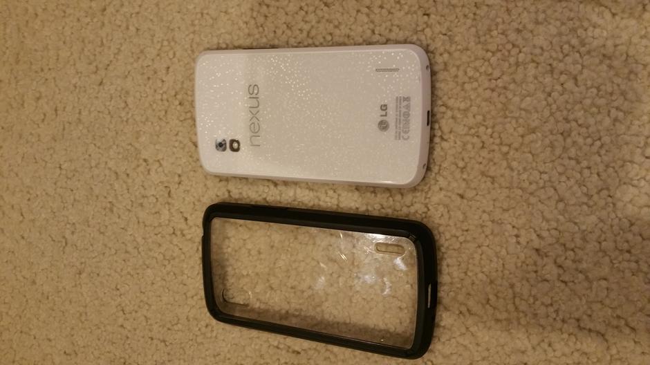 Used nexus 4 white. 8 GB. Comes with one ringke fusion case. No charger