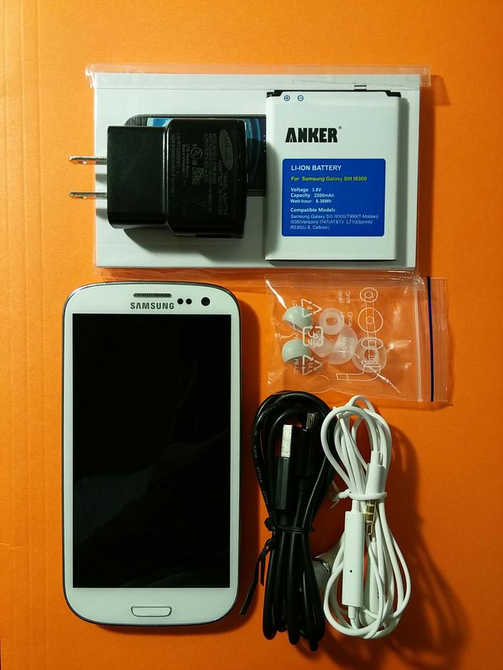 White T-Mobile Samsung Galaxy S III w new Anker 2200mAh Battery