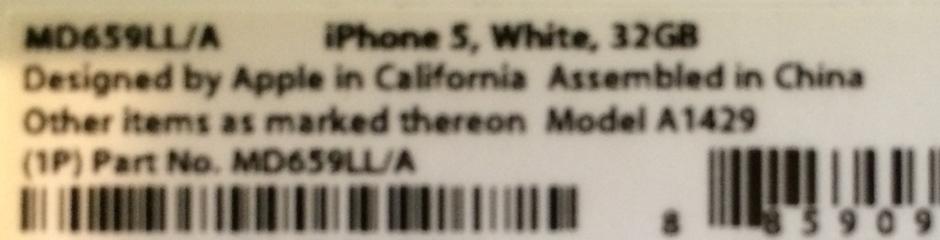 The box number is different because my original iPhone 5 had an issue and was replaced under warranty. When you get a phone replaced at an Apple store, it comes in a generic box. This phone is 100% free of defects, looks great and has AppleCare for a few more weeks.