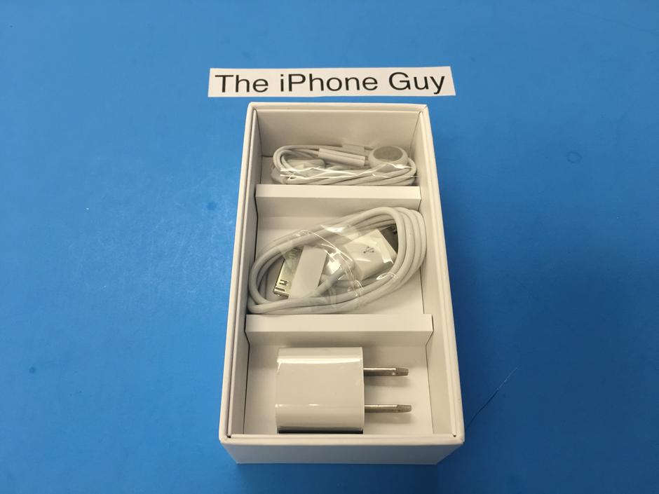 Comes with iPhone, box, manual, Apple stickers, USB cord, wall charger and headphones.