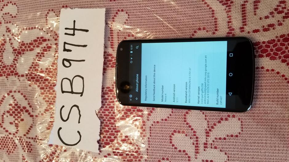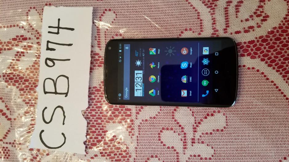 For sale is a gently used Nexus 4 in black color, with 16 GB of storage. It will come with a thin black protective case but without the charging cable. The screen is in excellent condition. When turned off and held to the light, there are few small scratches that can be seen, but they do not distract or impact the operation of the phone whatsoever.