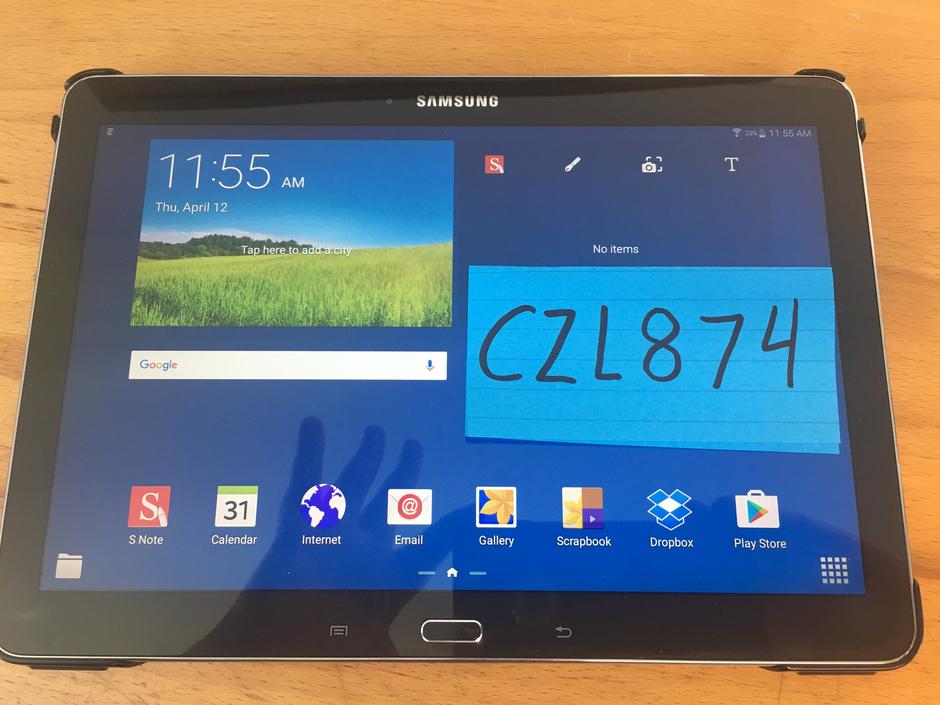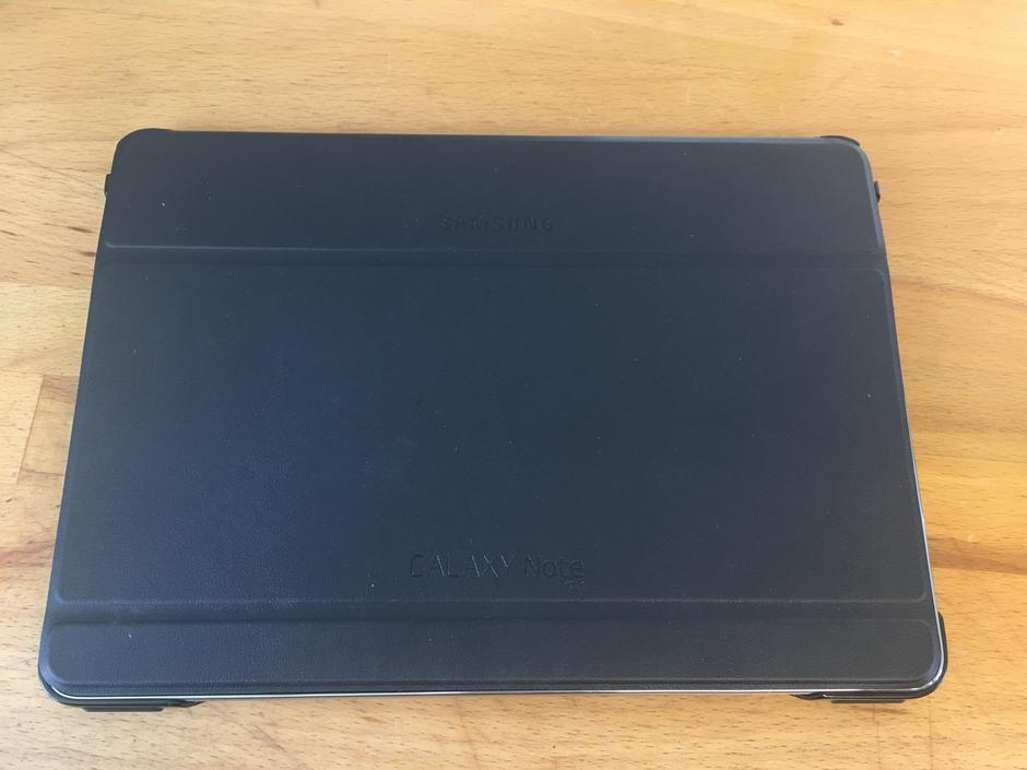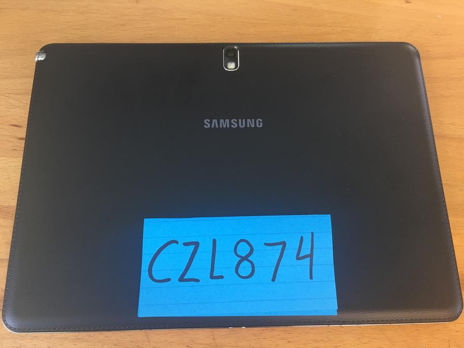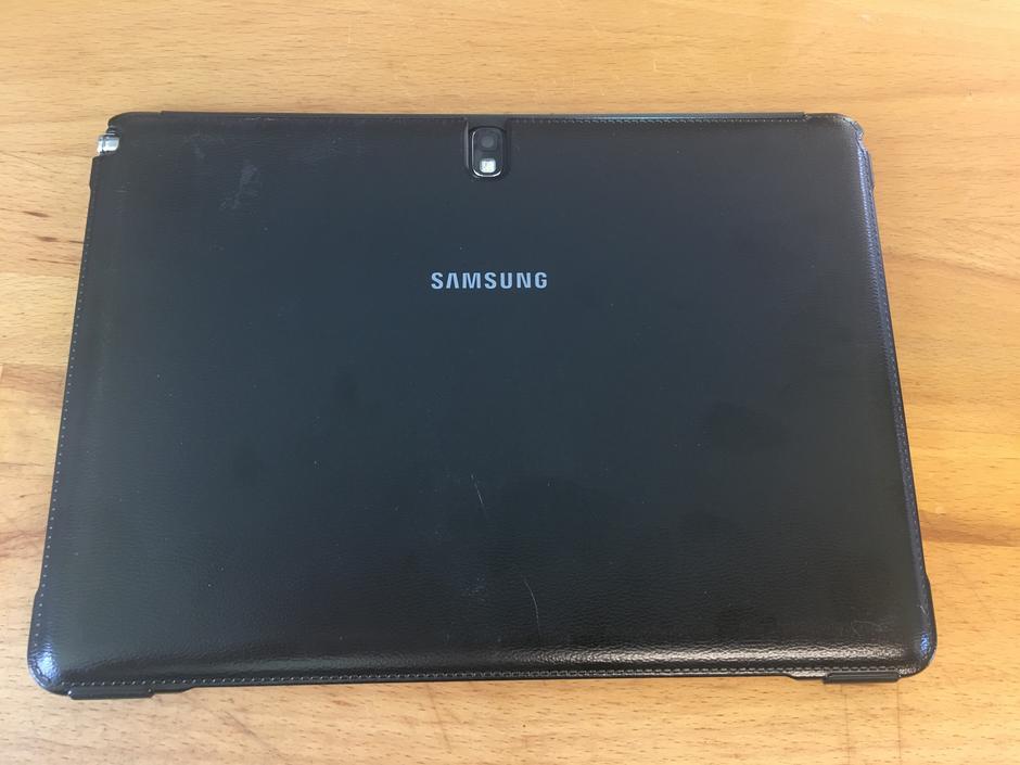 Tablet is in fantastic condition, I replaced the rear cover awhile back because it got cracked somehow. Works great, restored and ready to go. Comes with original Samsung smart case.