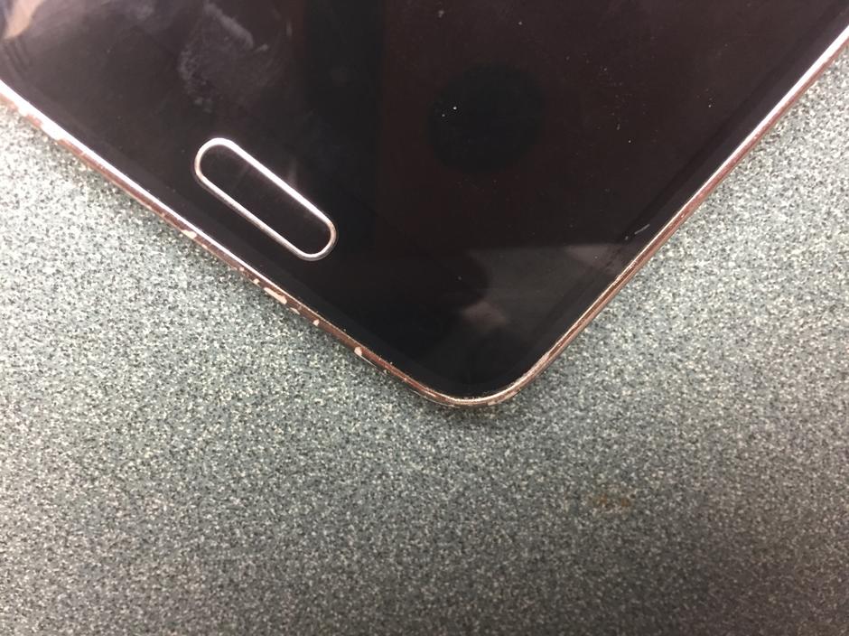 No, it was just some adhesive for the screen protector that needed cleaned off. I uploaded another picture of that corner