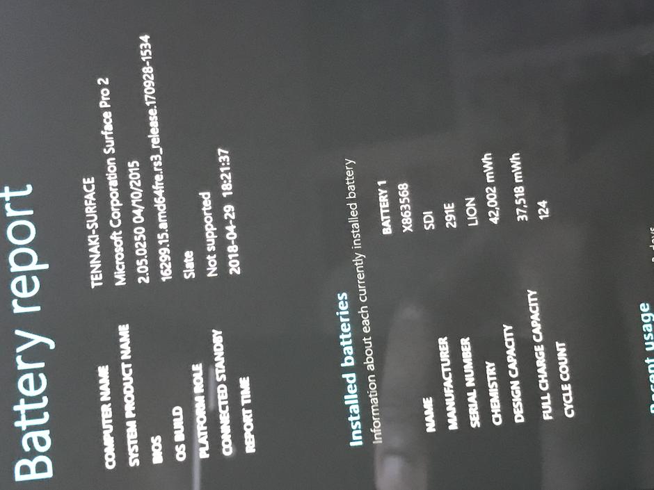 I haven't really used this machine off the charger a lot, and it has only 124 battery cycles according to Windows's built in battery report function, lasting a little over 5 hours on a charge on light loads.