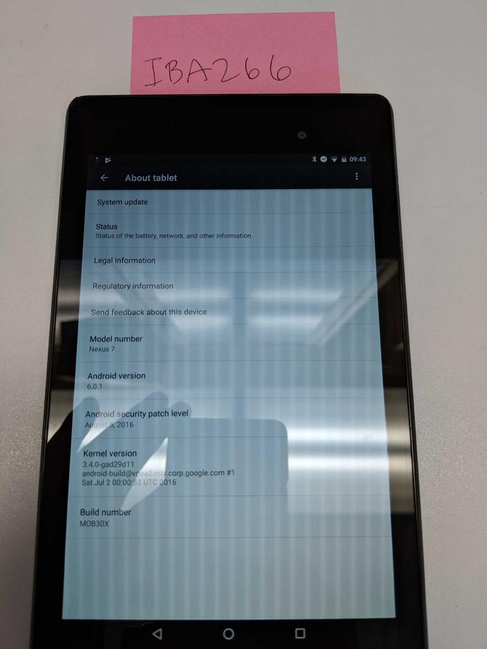 I am selling a fair condition Nexus 7 (2013) with 32GB. I will include a case that I have on it now and an aftermarket usb cable and charger. It has a couple chips on the corners of the tablet, which you can hopefully see in the pictures and a faint scratch across the screen, which you cannot see when the tablet is powered on.