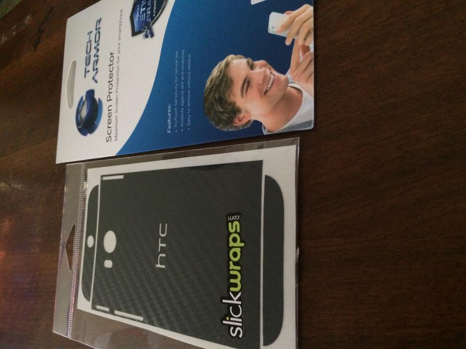 Like new Red HTC One M8 with wall charger, Screen Protectors, and a Slickwraps Carbon Fiber skin