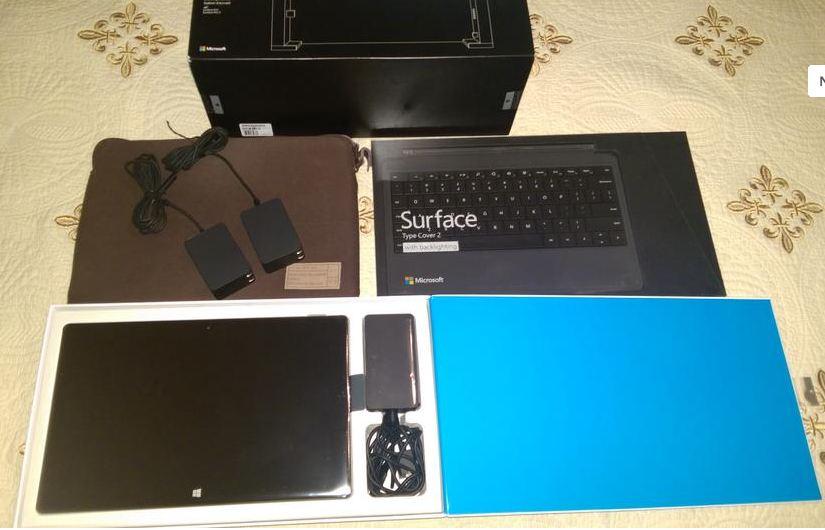 Good Condition SP2 w/ the intel core i5 4200u, 8 gb of RAM and 256 GB SSD. Includes desktop dock, 2 extra A/C adapters, case and black Type 2 Keyboard. All retail packaging with the stylus included. Also includes the remainder of the Microsoft 2 yr instant exchange warranty which expires Jan 14, 2016. Running Windows 10 currently.