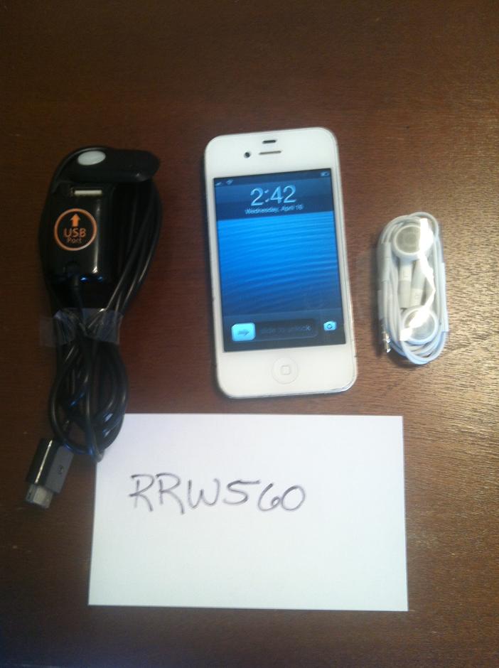 iPhone 4S - Sprint - 16GB - White. Phone has some signs of use but wear is barely noticeable. (see pictures) Currently, it is still operating on iOS 6 because of multiple complaints of lag and glitches with older iPhones on iOS7. Buyer may upgrade iOS at their discretion. All buttons and operations function flawlessly as does the included charger and headphones.