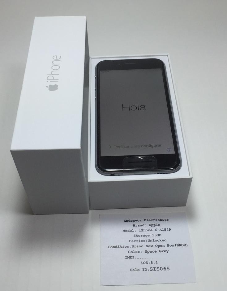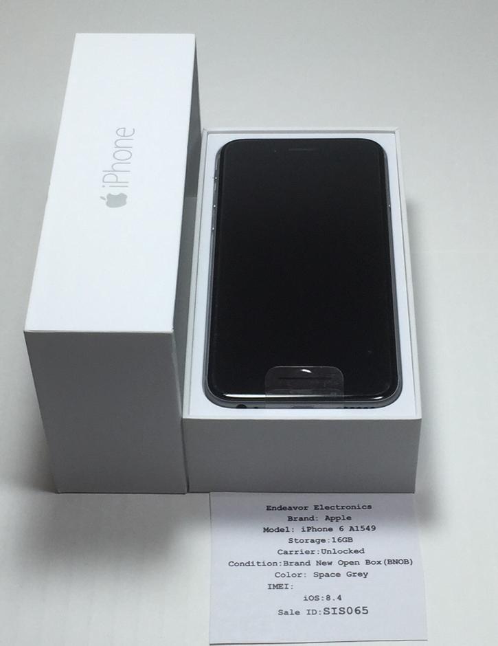Apple iPhone 6 16GB|Unlocked|A1549|Brand New Open Box|Includes Phone, Original Box, Apple Ear Pods, Apple A/C Adapter, and Apple Lightning Cable. All of the accessories are of course unused and 100% Authentic from Apple.