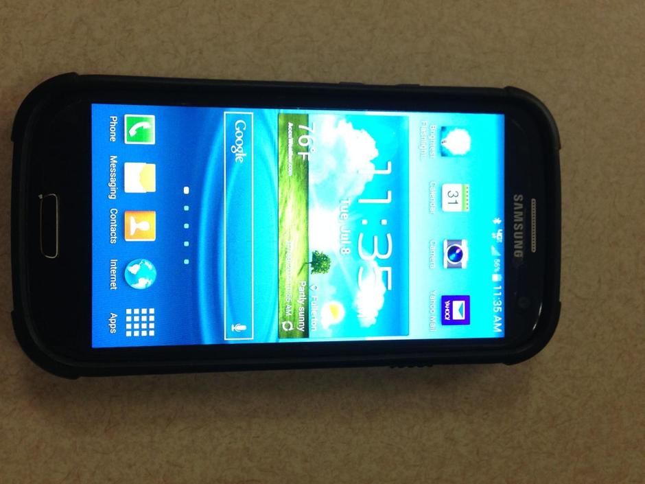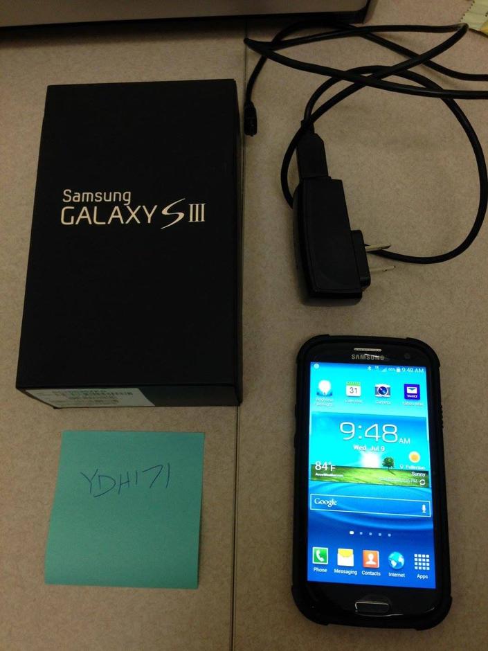 Samsung Galaxy S3 comes in the box it was purchased in, the original phone charger and an awesome black Urban Armor Gear (UAG) phone case ($25 value). Phone is in good condition with very minor scuffs from usual wear. Selling price includes shipping and handling charges.