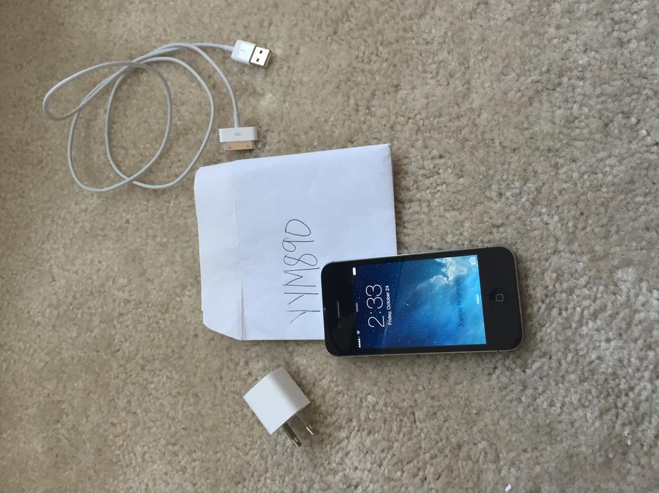 Good condition iPhone 4, no repairs have ever been made on the phone. The phone was always kept in a case and had a screen protector on for the first 2 years I had it, the screen has also never been replaced. Selling phone with original box and charger. Screen has a few marks (pictured) that are not noticeable unless the phone is held at a certain angle. Few minor dings on the sides from putting cases on the phone. Otherwise, the phone functions very well.
