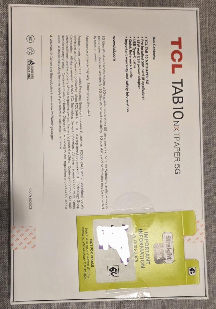 Brand new TCL TAB 10 nxtpaper 5g. Device is in manufacturer original packing. Unopened..It also comes with prepaid SIM card from straight talk for 3 months.