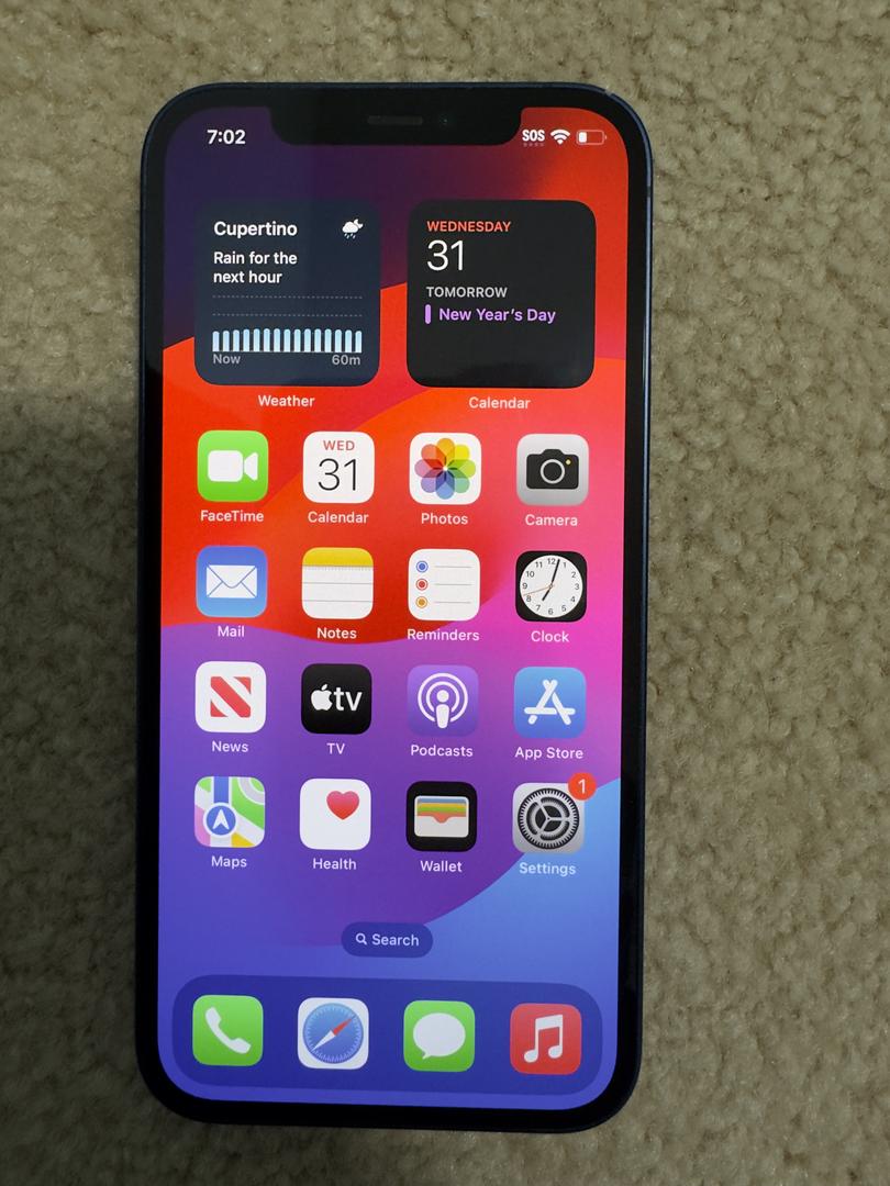 Good condition unlocked blue iPhone 12 for sale.