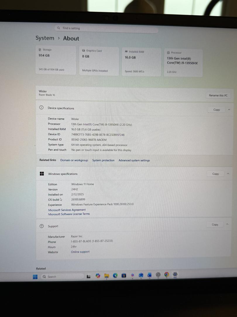 Model: Razer Blade 16″