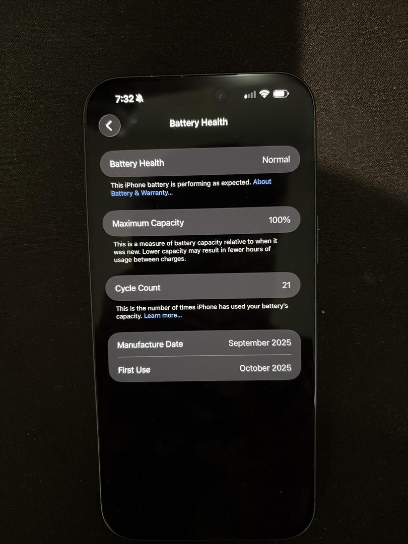 I have included a picture with cycle count and battery health