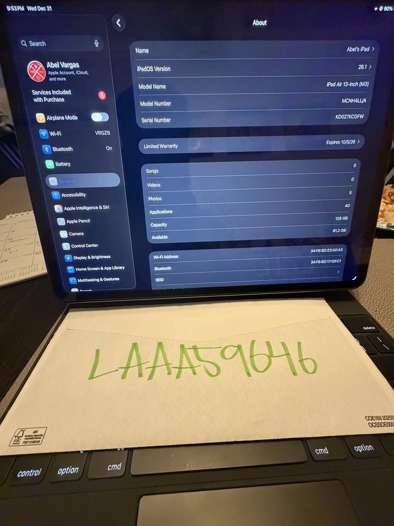 2025 Apple 13-inch iPad Air M3, Built for Apple Intelligence, Wi-Fi 128GB