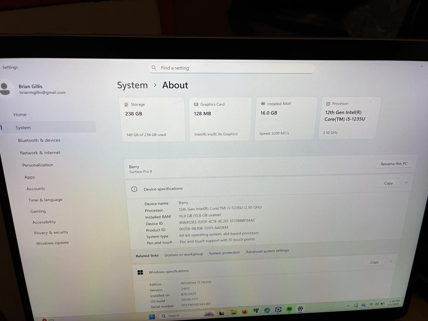 Great Condition Surface Pro 9 i5 - 16gb - 256gb Graphite w/Keyboard